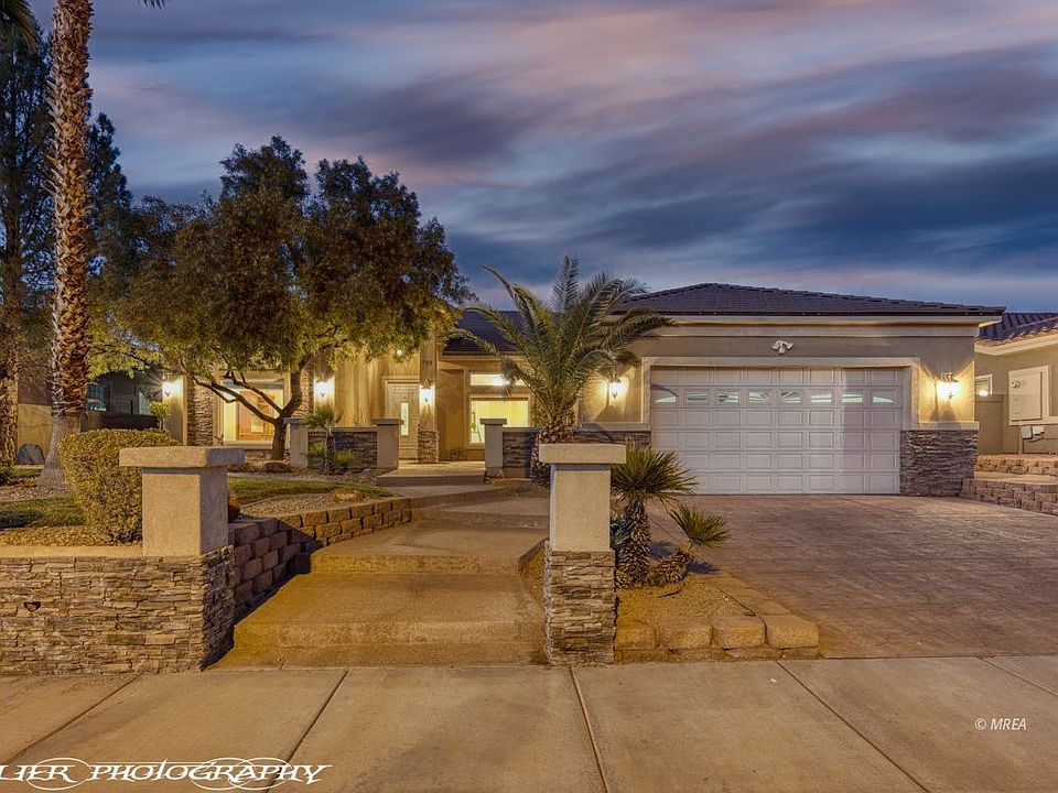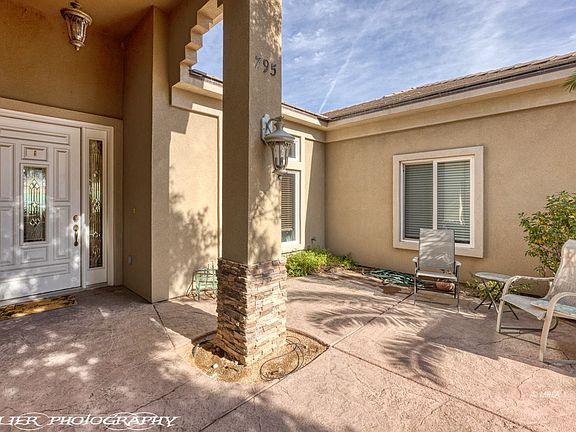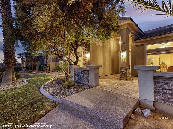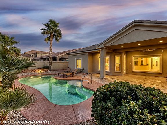 NO HOA!!!! As you walk up to the home you will notice a stamped concrete driveway leading you to the front courtyard with beautiful mountain views! As you step inside you are greeted with a Mediterranean style, beautiful tiled entry and a well laid out open floor plan. Just off the entry sits a large formal dining room and kitchen with beautiful custom cabinets and solid surface countertops. In the living room you will find an awesome custom built in with cabinets that match those of the kitchen. The 3 guest bedrooms in the home are well positioned and very spacious with bathrooms separating them. The main bedroom is large with a door leading to the back covered patio. The main bathroom is also spacious with walk in shower, garden tub and walk in closet. Out back you will notice a over sized covered patio, a very well maintained pool, outdoor lighting and amazing golf course and mountain views. The home also comes equipped with solar for the pool. NON HOA & located on the north side of the freeway! This home really has it all!