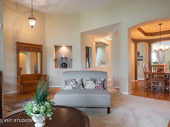 Bring the family...there's plenty of room! Enjoy your mornings on the deck with your coffee & watching sunrises that are breathtaking.This 2454 sq ft home is bigger inside than it appears from the outside. Premium lot backs to large nature preserve/pond. Vaulted ceilings in freshly painted kitchen. Tray ceilings in dining rm. Hardwood floors in kitchen,dining and entry. Plush carpet on main level in FR & bedrooms. Gas FP in living room. Undefined space on main level that could be bar, den,office,other... Master bedroom has extended area and MBB features inlay tile,double- bowl sink, walk in closet. English basement has Recreation area,4th bedroom, full bath plus huge area of unfinished space to further add to the finishing touches of this home. Cambridge Lakes offers pool,clubhouse,rec center,bike trails & ponds!This home will not disappoint! Quick close possible.
