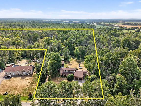 Executive Family Home Nestled On 10 Acres Of Private Land With 1,200 SqFt Detached, Insulated Workshop With Double 7x9Ft Doors, & a second Driveway. Plus Bonus 2 Bedroom In-Law Suite With Separate Entrance! Over 4,800+ SqFt Of Finished Living Space. Fully Renovated In 2020, Open Flowing Main Level With Porcelain Tiles & Engineered Hardwood Flooring Throughout. Spacious Living Room With Propane Fireplace, & Picturesque Huge Window Overlooking Backyard With Walk-Out To Backyard Deck! Eat-In Kitchen Features Large Centre Island With Quartz Counters, Porcelain Tiles, Double Sink, Subway Tile Backsplash, Pot Lights, & Is Conveniently Combined With Dining Area Including A Second Walk-Out To The Backyard Deck! Main Level Laundry / Mud Room With Laundry Sink & Separate Entrance. Additional Family Room & Den Is Ideal For Working From Home! Plus 2 Bedrooms In Their Own Wing With 4 Piece Bathroom, Perfect For Guests To Stay! Upper Level With 2nd Bedroom & Secluded Primary Bedroom Featuring Walk-In Closet & 4 Piece Ensuite With Double Sinks. Fully Finished Lower Level In-Law Suite With Separate Entrance Features Full Kitchen, Ensuite Laundry, Dining Area, Family & Living Room, 2 Full Bedrooms With Closet Space & New Laminate Flooring. Backyard With Spacious Covered Pressure Treated Wood Deck With Updated Railings (2025), Garden Shed, & Tons Of Greenspace! All Updated Flooring & Trim (2020/2025). Updated Kitchen (2020). Freshly Painted. Full Propane Automatic Generac Generator. 200AMP Electrical Panel W/ 60AMP Going To Detached Workshop. Attached Garage Doors (2020). All Windows & Doors (2020). A/C (2016). Napoleon Oil Furnace (2015). Perfect Multi-Use Home, Run Your Business, Or Generate Extra Income From Multiple Sources! Ideal Location With Tons Of Privacy, Across From Conservation Land, Tons Of Hiking & Riding Trails, & Minutes From Tiffin Conservation Area, & Close To Angus & All Major Amenities Including Schools, Restaurants, Groceries, & A Short Drive To Highway 400!