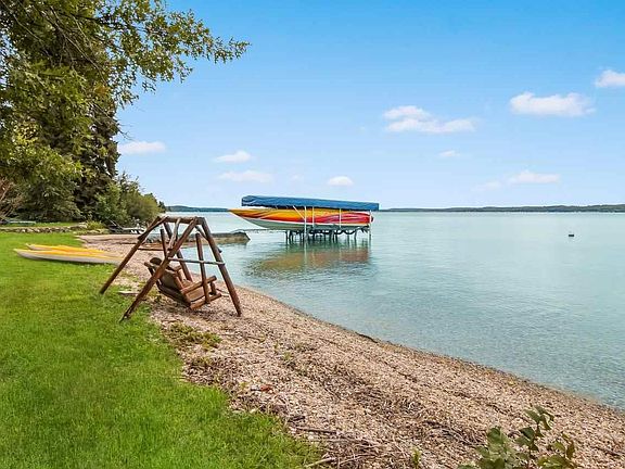 SPECTACULAR TORCH LAKE RETREAT. Enjoy lakefront living at its best with this quality, custom built home on 1.23 acres and 225' of beautiful shoreline. Upscale amenities include wood floors, custom gourmet kitchen, beautiful granite, tall wood cathedral ceilings, open floor plan with main floor living, wonderful master bath with walk-in shower & jetted tub, A/C, central vacuum, a bonus room perfect for a home office or to host extra guest, stone patios & porches, hot tub, professionally landscaped, concrete circular driveway, and hookup for portable generator. IN ADDITION, this property includes an amazing custom-built detached garage (1126 sq. ft.) that in completely finished, including heat, epoxy floors, attic space, great lighting, TV and sound hookups, large overhead doors, room for all the toys and a great place to host parties that even include a lake view. The property can be split. Enjoy boating access to the Chain of Lakes including Elk Lake, Lake Skegemog and Clam Lake or just set back and watch the sunsets. Located only 3 miles from Alden and 8 miles to Bellaire