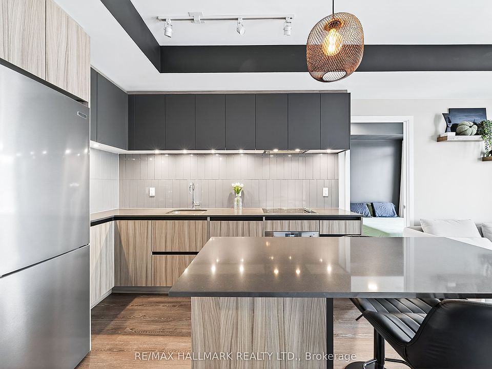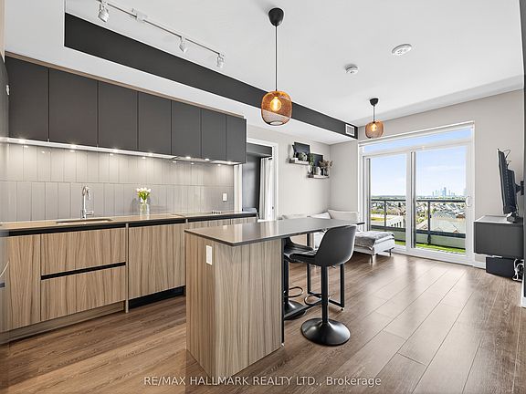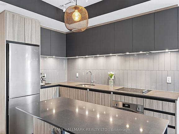 Step into this beautifully finished, move-in-ready 2-bedroom, 2-bathroom unit in a pet-friendly building in the heart of Thornhill! Designed with both functionality & style in mind, this suite features a practical split-bedroom layout, quartz countertops, sleek modern finishes, and a bright open-concept living space that maximizes both flow & natural light throughout the day. The unit has been painted with design in mind and includes thoughtful upgrades such as a custom shower niche, blinds, and an additional light fixture in the living room for enhanced ambiance. The kitchen features contemporary cabinetry with integrated under-cabinet valance lighting, soft-close hardware, and a matching quartz island with dining accommodations. Additional highlights include low-consumption toilets, an acrylic deep soaker tub, a stacked front-loading washer & dryer, and energy-efficient lighting in the foyer & bedrooms. West-facing views allow you to enjoy breathtaking sunsets while relaxing on the oversized 134 sqft balcony, accessible from both the living room and the primary bedroom. As a resident, enjoy access to premium amenities, including a fitness centre with a yoga studio, a basketball court, a modern party room, guest suites, co-working space, a family room, an outdoor terrace with dining spaces, BBQs, & lounge areas, and visitor parking. Perfectly located in the core of Thornhill's most vibrant community, this building is steps from Thornhill Green Park, cafes, Walmart, F45, restaurants, pharmacies, banks, Promenade Mall, and T&T. Families will appreciate the nearby French Immersion elementary & high schools, while commuters will enjoy seamless access to Hwy 407, Hwy 7, and Viva Transit. York University, Seneca College, and the York University Subway Station are all just a quick 15-minute drive away. Advanced security features include 24-hour concierge, key fob access, and surveillance cameras. Enjoy the convenience of a P1 parking spot and a locker for extra storage.