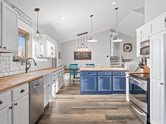 Stunning updated 4-bed, 3-bath home on 10.8 acres near Whaletail Lake and Lake Minnetonka! The bright, open main level features vaulted ceilings, beautiful LVP floors, an informal dining area with banquet seating for additional storage, and a beautifully renovated kitchen with center island, butcher block countertops, additional prep space, and plenty of storage. There are 3 spacious bedrooms on the upper level, including an owner’s suite with renovated full bath. The walkout lower level includes a 4th bedroom, renovated 3/4 bath, and a large living room with wood-burning fireplace, and beautiful built-ins. The unfinished basement could provide additional living space! Other features of this remarkable property include a large patio and deck, new dishwasher, new water heater, newer furnace, A/C, new carpet, and a 40x80 pole building with electrical and concrete floor. Fantastic opportunity to own 10+ private acres with easy access to Hwy 7 and city amenities!