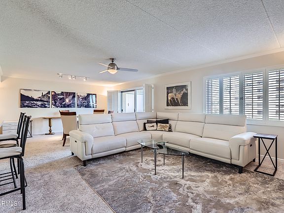 Perfect Lock-and-Leave Home! Welcome to Scottsdale Shadows, a vibrant community ideal for primary or second homes, located in the heart of Old Town Scottsdale. Experience the lifestyle you deserve at an affordable price, just steps away from entertainment, Fashion Square Mall, boutiques, art, and some of the best restaurants. Enjoy a friendly atmosphere with engaging activities like organized card games, book clubs, and neighborhood gatherings. Your HOA fee includes incredible amenities in this 24/7 guard-gated community, covering utilities too! These amenities feature a 9-hole golf course, three heated swimming pools (including one covered), spas, BBQs, sauna, tennis courts, art and ceramics rooms, a well-stocked library, woodworking shop, two gyms, a designated car wash area business center, conference room, and more! This north-facing unit provides breathtaking views of the McDowell Mountains from every room and overlooks a beautifully landscaped courtyard, perfect for neighbor meet and greets. This unit can use your special touches in making it your own. The building is highly sought after, with elegant hallways featuring marble walls and modern upgrades. You'll have assigned garage parking #79, with direct elevator access. And, yes you have laundry in your unit! Don't miss out on the chance to create lasting memories in this fantastic community! Make jewelry with friends, attend sip-and-paint classes, learn furniture-making, enjoy puzzles, or simply relax at home while enjoying the stunning views. This is the perfect place to relax and enjoy!