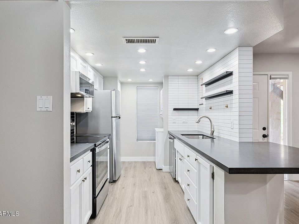 Rare find. 3 bedroom single level unit in Walden Place. Remodeled in 2022. Vinyl Plank floors throughout, quartz counters, stainless appliances,tiled bathrooms and shower, Primary bedroom with walk in closet , primary bath separate tub and shower. 2 patios. Across from Chapparal Park. Minutes to Scottsdale Fashion Square, Old Town Scottsdale many fine restaurants