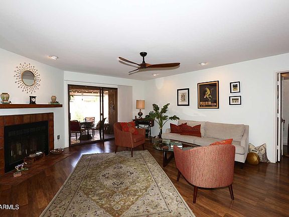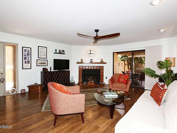 Gorgeous, Spacious & Quiet Community. 1BD/1BA, Ground Level, OPEN FLOOR Plan, Beautiful Kitchen with Formal Dining, Granite Counters, Double Sinks, Tiled Back Splash, WOOD LAMINATE FLOORS. Wood Burning Fireplace/Oak Mantel, Dimmer Lights Throughout. MSTR BD / Large Walk-In Closet/Built in Shelves, Bath-Double Raised BLUE GLASS VESSEL Sinks, Maple Cabinets. TWO SEPARATE Outdoor Covered Patios with Roll Down Sun Shades, Yard Designed to Entertain with Separate Gated Entrance, Large Outdoor Storage, CUSTOM VERTICAL SLIDING PANELS/ both Patio Doors, Inside Laundry. Lush Landscaped Community, Heated Pool & Spa/ Includes Cabana Grill Area. Easy Access to Greenbelt, Bike Paths, Hiking & Fishing, Minutes from Old Town Scottsdale, Boutiques, Galleries, Gourmet Restaurants, Minutes from the 101.