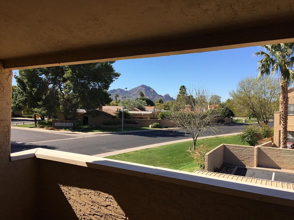 Scottsdale Condo on the Greenbelt (Walden Court). Light and bright with vaulted ceilings, hardwood floors, in unit W/D, fireplace and views of Camelback Mountain. Walk in closet in master, enclosed storage area on balcony. Covered parking. Unit is a 2nd floor unit. Pet friendly. Non-Smoking Unit. Lease is with owner. Water is included in rent. Power Company is SRP