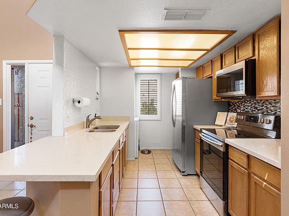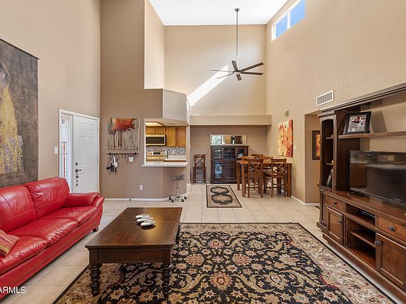 Spacious 2BR/2BA condo with soaring ceilings in LR and DR. Open kitchen to living area with stainless appliances and quartz counters. Living room has fireplace and sliding doors to balcony with nice views. Both bedrooms are good sized and the MBR has a huge walkin closet and additional balcony with views. The well maintained complex offers a heated pool and spa as well as a prime location for access to miles of bike and walking paths along the Greenbelt. Close to Old Town, golf and everything else that Scottsdale has to offer.