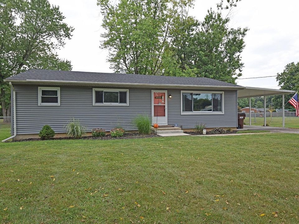 Updates galore! New kitchen with stainless appliances. Updated/modern bathrooms. New roof, furnace and A/C too! No carpet. New concrete pad for covered patio/carport and new deck. Large flat backyard is completely fenced in. Home warranty included.