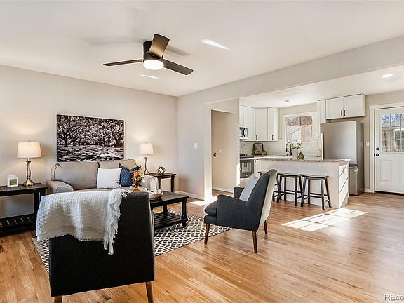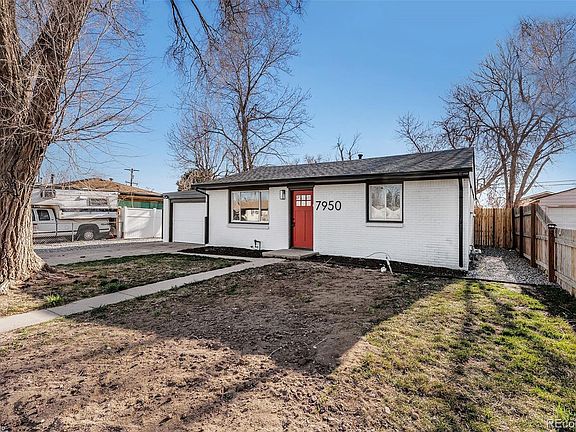 Welcome to this completely remodeled brick ranch in Commerce City. This home has everything going for it! Beautiful refinished hardwood floors span the entire home. The layout is bright, open and inviting. The completely remodeled kitchen with white slow-close cabinetry, granite counters, stainless appliances, tile backsplash and a kitchen island makes this a truly great space for entertaining guests. There is an oversized-deep 1-car garage and a large back-yard. Extra storage space in the cellar (bonus sqft nogt listed in public records). Quick access to highways will make your commute to Denver and DIA easy. Tons of new development in and around Commerce City makes this an excellent investment. Close to the 72nd Light Rail station. Don’t miss your chance to tour this renovated mid-century starter home in a location with so much going for it!