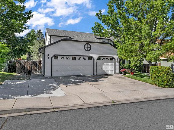 FABULOUS NORTH RENO HOME WITH NO HOA'S! This home offers easy access to the freeway, making commuting convenient. Being minutes away from both the University of Nevada, Reno (UNR) and downtown Reno ensures proximity to educational, entertainment, and cultural opportunities. The spacious kitchen and family room create an excellent space for entertaining guests. Whether it's hosting parties or enjoying quality time with family and friends, these areas provide ample room for socializing., The home's floor plan strikes a balance between togetherness and privacy. It allows for communal areas where everyone can gather comfortably, while also providing separate spaces for personal retreats. The property boasts a picturesque backyard with mature trees, a large patio area, and a paver sidewalk that surrounds the home. This setup offers both privacy and a sunny southern exposure, making it an inviting outdoor space for relaxation or gatherings. With a spacious laundry room featuring shelving, you'll have ample storage for your laundry supplies and other items. The three-car garage not only accommodates multiple vehicles but also provides plenty of storage options. The storage area extends all the way up to the ceiling, maximizing the available space. The presence of newer energy-saving windows is a valuable feature. These windows not only contribute to better insulation but also come with a lifetime guarantee, which can be transferred to the new owner upon the sale of the home.