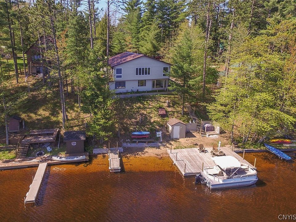 Is this the year you finally make the move to the lake? This beautiful five bedroom lakefront Brantingham home is already set for year-round use and set up well for large or small or groups. The first floor offers breathtaking views from the living room and dining area, three bedrooms, two full baths and galley style kitchen. The basement is also finished offering a second kitchen, living area, large bedroom with lakefront views, a third full bath, utility room and enclosed patio area overlooking the large dock and shoreline. The home includes many recent updates including hardwood flooring, pine cathedral ceilings, steel roof, vinyl siding, interior paint, new exterior staircase to the shoreline, new docks and more. Don't miss out on this opportunity. Make 2018 the year you make the move!