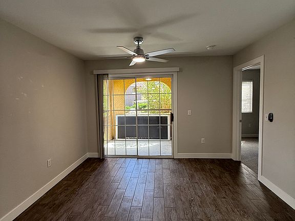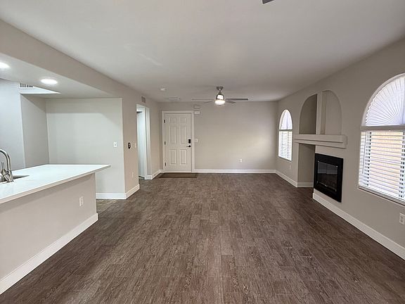 This dual-master condo feels brand new with all new bathrooms, countertops, carpet, fresh paint, window coverings, washer, dryer, microwave, and dishwasher. Enjoy an open floor plan with wood-look tile, cozy fireplace, and breakfast bar. Located in a gated community with resort-style pool, spa, and waterfall feature. Central location near shopping, dining, and schools move-in ready! Owner pays HOA fee, tenant pays electricity and gas.