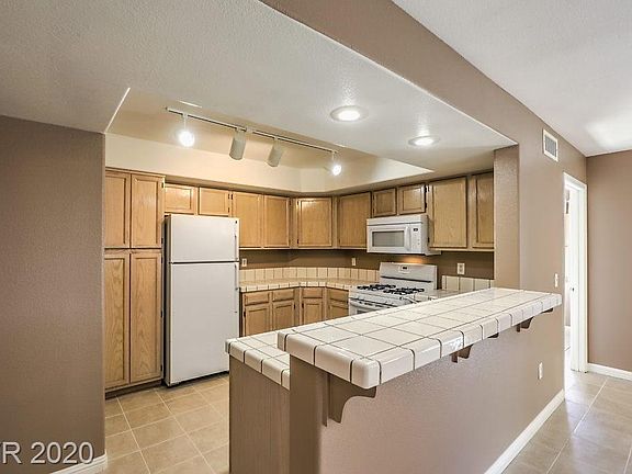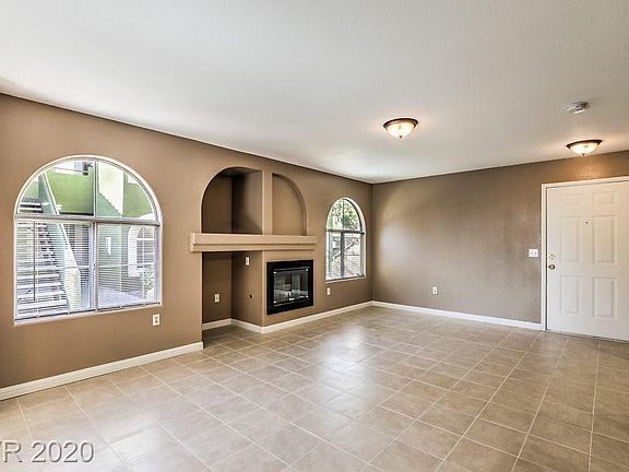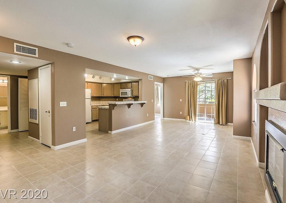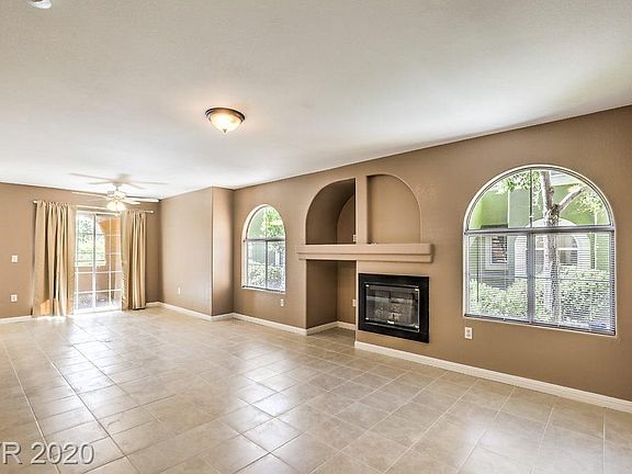 Located in the gated Raintree Community of Spring Valley, well-maintained first floor, 2 bedroom, 2 bath condo. Features new tile flooring, new appliances, fresh paint, new A/C, & new mirrored closet doors in each bedroom. Coffered ceiling in kitchen w/eat in bar & pass through opening to living area which includes a cozy gas fireplace w/media niche & arched windows. Master ensuite w/ double sinks, walk-in closet, tub & shower combination. New washer & dryer located in unit. Delightfully private surprise patio/porch with views off the living area for your morning coffee. With pools & spas on-site, easy commute to strip, conveniently located to parks, stores & shops, your buyers will love this charming place.