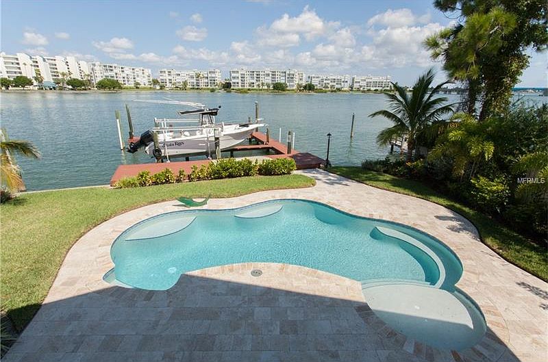 AWC - Taking Backup Offers A taste of the Keys right here in St. Pete Beach. Located directly on the Intracoastal Waterway with splendid view of the boat traffic makes this an exciting choice for your new home. Walking distance to some of the greatest beaches in Pinellas County. This home had an extensive remodel in 2013. Elevated 3 Bedroom, 2 Bath home featuring an open floor plan including a wood burning fireplace, volume pine ceilings, hardwood floors, office off master bedroom, amazing master bath with soaking tub, Kraftmaid Kitchen Cabinets with Granite Counters and inside laundry make this one of the best waterfront properties being offered today. The oversized garage will accommodate up to six cars and features a workshop, small office and a workout room. The exterior is highlighted by a 2013 Curtis pool with Travertine Tile Decking, metal roof, lush landscaping, giant size multi level dock with boat slip to accommodate up to a 60 foot yacht, boat lift, upper and lower decks. Current Flood insurance is only $540 per year. No this is not a misprint. Flood is only $540 per year!