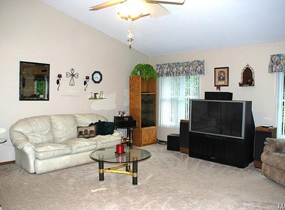 Wonderful ranch home w/ 3 beds, 2.5 baths on 2 private acres. The gorgeous stone elevation and covered front patio greet you at the door. Enter into the welcoming foyer, then on to the living room w/ vaulted ceiling, skylights and gas fireplace to enjoy year round. Pass under the planter shelves into the kitchen w/ 2 pantries, breakfast bar, arched window and vaulted ceiling. The dining area is spacious w/ huge bay window, views of the backyard and access to the maintenance free deck. The master bedroom has vaulted ceilings, walk-in closet and full bath. The 2 add'l bedrooms are good sized and one has a box bay window. The full bath offers a jetted tub and pedestal sink, plus theirs a half bath conveniently located off the main floor laundry room. Built-in speakers are found throughout the home, as well as a central vac system. The open stairway leads you downstairs into a partially finished basement and offers additional finishing opportunities w/ the roughed-in full bath and walk out area.