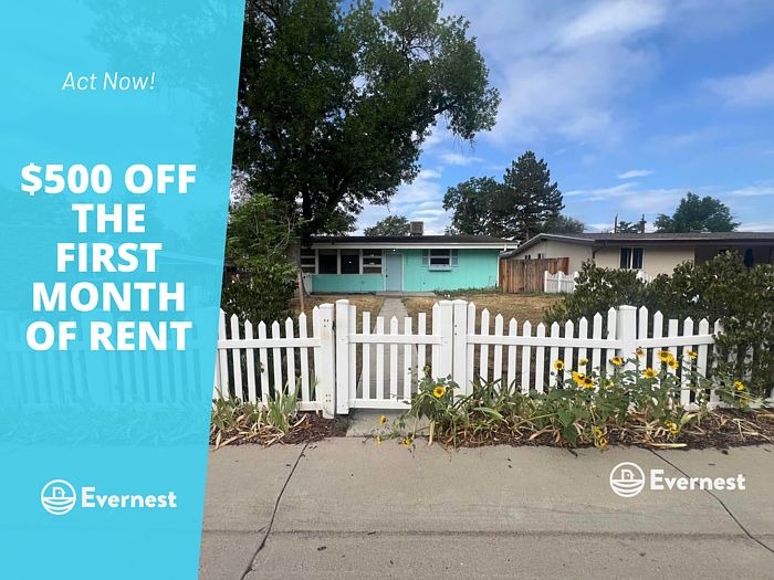 Cozy 2-Bedroom Home with Modern Comforts $500 OFF ON FIRST MONTH'S RENT! Welcome to this charming 2-bedroom, 2-bathroom single-family home, perfectly nestled in a serene neighborhood, offering both comfort and convenience. Spanning 1,221 square feet, this property showcases an open floor plan that seamlessly connects the living, dining, and kitchen areas. The kitchen is adorned with modern appliances including a refrigerator, microwave, and stove/oven, making it ideal for preparing delicious meals and entertaining guests. Each bedroom is generously sized, providing ample space for relaxation and personal retreat. Step outside to discover a delightful fenced yard, perfect for outdoor activities and ensuring privacy. Enjoy peaceful mornings or unwind in the evenings under the covered patio, an excellent spot for alfresco dining or simply soaking in the tranquil surroundings. Additional features such as garbage disposal contribute to an easy living experience. Conveniently located, this home is a mere few minutes away from local shops, schools, and parks, offering a balanced lifestyle of leisure and accessibility. Don't miss the opportunity to make this inviting house your new home. Pets: Yes (2 maximum, $300 deposit, $35/month pet rent, 3 pets with approval). Residents are responsible for all utilities. Application; administration and additional fees may apply. Pet fees and pet rent may apply. All residents will be enrolled in Resident Benefits Package (RBP) and the Building Protection Plan which includes credit building, HVAC air filter delivery (for applicable properties), utility setup assistance at move-in, on-demand pest control, and much more! Contact your leasing agent for more information. A security deposit will be required before signing a lease. The first person to pay the deposit and fees will have the opportunity to move forward with a lease. You must be approved to pay the deposit and fees. Beware of scammers! Evernest will never request you to pay with Cash App, Zelle, Facebook, or any third party money transfer system. A prospective tenant has the right to provide to the landlord a portable tenant screening report, as defined in Section 38-12-902 (2.5), Colorado Revised Statutes and If the prospective tenant provides the landlord with a portable tenant screening report, the landlord is prohibited from charging the prospective tenant a rental application fee or charging the prospective tenant a fee for the landlord to access or use the portable tenant screening report. Please note that this is subject to qualification criteria. Contact us to schedule a showing.