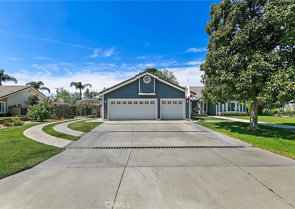 Beautiful 4 bedroom, 2 bath home with manicured park like landscaping on a 1/2 acre lot. Energy efficient double pane windows with shutters, new paint. Commercial grade Slate flooring, marble counters in bath rooms. Fireplace has marble and firerock insert. Kitchen has granite counters and beautiful Tile floors, ceiling fans throughout, decorative glass doors for office. Out door patio cover with full length aluminum slats full back up power system with generator. Storage shed with electricity, and fully lite basketball 1/2 court. Water wise landscaping with 24 various fruit trees. On corner lot, and dog run. 3 car garage, with fully fenced block wall around property with reinforced covered RV pad.