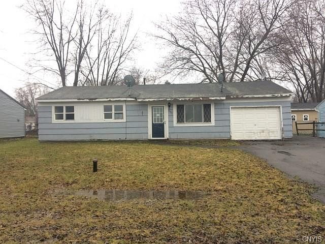 2 bed, 1 bath Bridgeport, NY home for sale. This ranch style home has an attached 1 car garage, paved driveway and nice size yard. The property is located in a residential area. The home will need to be cleaned out and updated before move in ready. there is a nice washer and dryer area. Living room has a fire place. Kitchen has a sliding glass door that leads to the back yard. Great potential here with the proper TLC