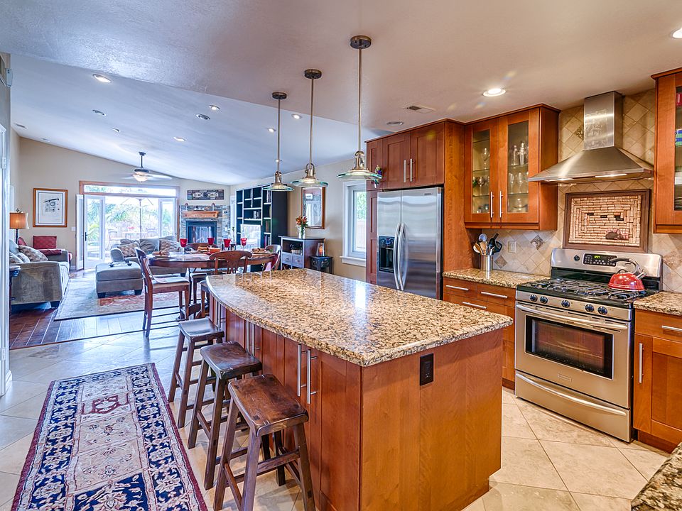 Rare find in La Costa Canyon! Single story with DOUBLE MASTERS, 3 bedrooms, 3 full bathrooms. Huge great-room, spacious upgraded kitchen with large island, wine fridge, soft-close drawers, travertine flooring and backsplash. Vaulted ceilings in spacious dining and living room with hardwood flooring throughout, Custom Fireplace, and French doors lead out to low-maintenance entertainer's paverstone patio. Great privacy with no neighbors behind. Custom master closet showcases extensive built-ins! Wont Last! Highly desirable neighborhood! This entertainer's dream-home embodies the San Diego Lifestyle! Lush landscaping effortlessly guides you toward the gorgeous solid mahogany entry door. You step in to the spacious kitchen and feel the floor-plan flow into the living space. With highly upgraded cabinetry, designer granite countertops and travertine flooring, the feeling of quality is significant. The flow continues through the dining area and into the huge expanded great-room with vaulted ceilings and lustrous walnut flooring. New Andersen and Millgard Windows throughout. Walking distance to top-rated San Dieguito schools - Mission Estancia, Diegueno Middle School and La Costa Canyon high school. Sparkling community pool, spa and park are just down the street. Very convenient to the new La Costa Towne Center and Carlsbad Forums Shopping Center.
