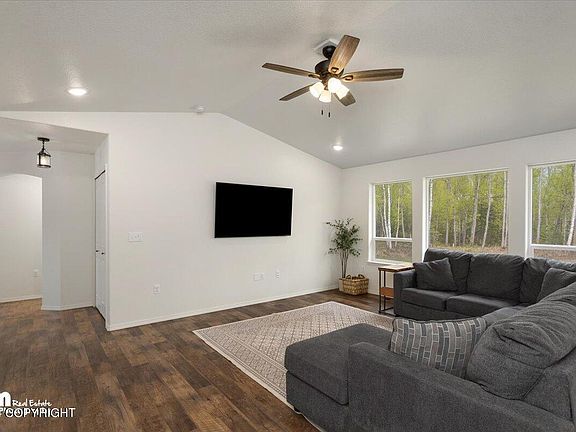 Discover this private and spacious lot featuring a nearly new, meticulously maintained home in a premier Mat-Su Valley subdivision. With vaulted ceilings, luxury vinyl plank (LVP) flooring, and stunning granite countertops throughout, this home exudes elegance and comfort. Situated on almost an acre of land, the large backyard provides ample privacy.The open floor plan of this ranch-style home offers the perfect blend of convenience for commuting and tranquility for relaxing at home.