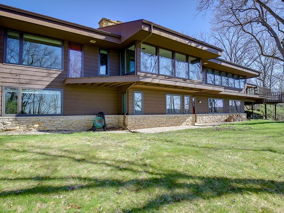 This stunning 8.5-acre estate is 15 min from Verona, Epic, and Madison, combining convenience with rural tranquility and blends sophistication with pastoral charm. The custom prairie-style home offers breathtaking views and is surrounded by woodland, creating a secluded, treehouse-like feel in summer. Inspired by Frank Lloyd Wright's "organic architecture," the home features two Fox River Rock fireplaces, a black walnut ceiling, and expansive south-facing windows that flood the home with light and stunning vistas. Equestrian enthusiasts will love the paddocks, visible from the main living areas, and the heritage barn with modern functionality including two oversized stalls, a feed and tack room, and a spacious hay loft. A lifestyle retreat combining country peace with city convenience.