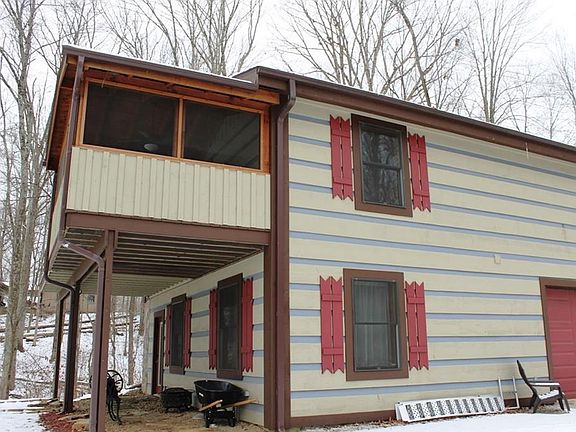 A very cozy lake front Brown County cabin with a great view of Lake LaSalle (35A). This property features a wood burning fireplace, screened in deck off the Master BR., hardwood flooring, limestone counter tops in kitchen and a open floor plan. The logs on cabin are veneer logs.