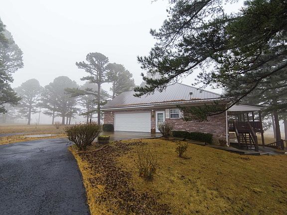 Beautiful view! Quality craftsmanship throughout this beautiful home located just outside Omaha, AR. This all brick exterior, metal roof home features 3 bedrooms, 3.5 baths, a large kitchen, two sided fireplace, office, den, alarm system, RV detached shop garage, and a large diesel generator! Wallpaper was hung in a manner so that it can be removed easily, if desired. Seller says bring an offer!