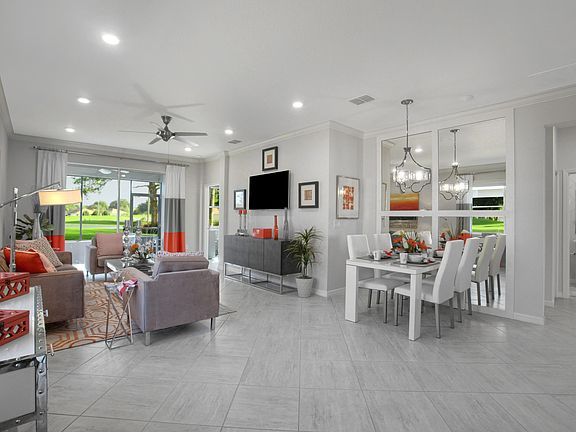Wonderful Oren model home located in Indigo East, features 2 bedrooms, 2 baths, and a 2 car garage, This home comes completely furnished with all it's gorgeous furniture ! The kitchen and great room has open concept living, giving you a spacious entertaining area! You will find crown molding in the foyer, kitchen and great room and there is beautiful ceramic 18 ''x 18'' tile set on the diagonal for that designer Look! The bedrooms have soft, thick carpet. The kitchen has stainless steel appliances, quartz counters and a tile backsplash. The master suite has a large walk-in master closet and the master bath has quartz counters, double vanity sink, and walk in shower with seat.