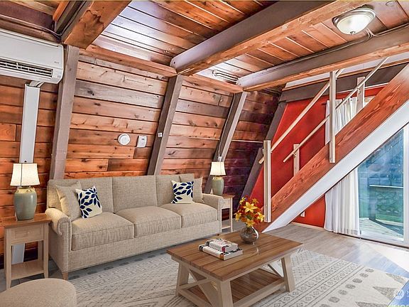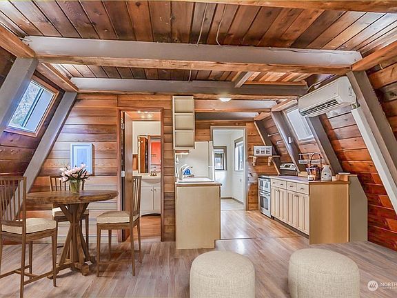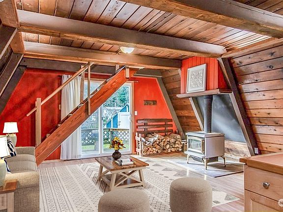 Authentic and very classic A frame cabin. This Ideal cabin located in a peaceful setting is full of character and charm. Perfect starter home or a get away cabin Air B&B. Fully fenced sunny oversized corner lot allows for plenty of room for gardening, pets, or your favorite outdoor activity. Beautiful mountain views from cabin site. Newer mini split provides energy efficient air conditioning and heating. Cozy up next to the wood stove in evening with your favorite beverage. Enjoy the extra natural light and pitter patter of the rain from the multiple skylights. Practical and economical kitchen with updated cabinets. Oversized utility room for extra storage and or walk in pantry. Come see this charming cabin today.