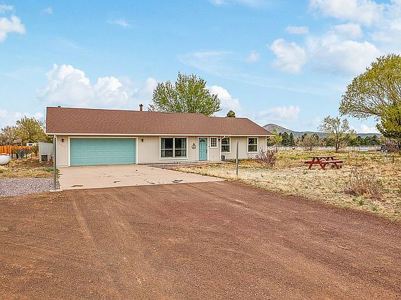 Price Reduced,4 BEDROOM 2BATH SPILT FLOOR PLAN, MASTER BEDROOM ON ONE- SIDE AND 3 BEDROOM ON THE OPPOSITE SIDE HOME IS ON 2.5 ACRES,CORNER LOT, PRIVATE FRONT ROAD, REMODLED KITCHEN NEW APPLIANCES, FARM SINK, CORIAN COUNTERS. LAMINTED WOOD FLOORING , CAPRET IN BEDROOMS, REAL WOOD FLOORING IN GREAT ROOM, BEAUTIFUL GREAT ROOM WITH LARGE WINDOW, WOOD BURNING STOVE, HAS A/C, CENTAL HEAT, PROPANE GAS, PRIVATE WATER, LARGE BLUE SPRUCE TREE IN FRONT YARD, SMALL FENCED PLAY AREA IN BACKYARD, 2 CAR GARAGE. VIEWS OF MT. ELDEN AND SAN FRANCISCO PEAKS FROM LIVING ROOM WINDOW .