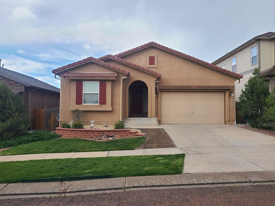 Luxury living near military bases! Easy access to I-25 and Powers Blvd. shopping, entertainment, and restaurants are just minutes away. Beautiful and well maintained 5 bedrooms ranch floor plan w/ low maintenance exterior, stucco finish, tile roof, large concrete patio in back yard, stamped concrete in front yard and located within District 20, Academy School District. This is an open floor plan w/ granite counters and hardwood in the kitchen and dining room. This 3,230 square foot home offers 3 BR, laundry room and 2 full baths on the main level. Main level only has carpet in the bedrooms. The master bath features a soaking tub and large walk-in closet. On the lower level you will find a huge family room, 2 additional bedrooms and a full bath. There is also a large storage room, A/C and 220 in garage. 220V was previously used to charge an electric vehicle, and could be used again for that purpose if you have a plug in EVSE charging unit. Do not miss out on this perfect blend of luxury, location, and top-rated schooling. Schedule your tour today! $2700/month for 36 month lease or $2750/month for 24 month lease or $2800/month for 12 month lease