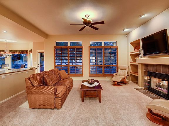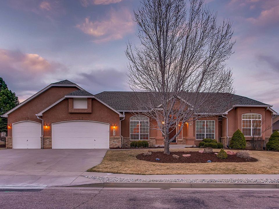 This home is the epitome of what it means to live in Colorado! Nestled in the foothills of the highly desirable Peregrine community on a spacious corner lot, surrounded by resident wildlife, mature trees, and perennials all accented by home and landscape lighting. Home sits within walking distance to Woodmen-Roberts Elementary School and Woodmen Valley Park which boasts playing fields, picnic sites, playgrounds, and lighted tennis courts. Close by is Blodgett Peak Open Space; 167 acres of majestic open space surrounded by ponderosa pine, douglas firs, scrub oak and geological rock formations. This nature space offers something for everyone. Upon entering the home, you are greeted by an open floorplan with neutral paint and lots of natural light provided by the abundance of windows throughout. On this level are two main level bedrooms, 9 ft ceilings, new carpet, refinished hardwood floors and a gourmet kitchen perfect for gatherings of any size with family and friends. Entertaining is a dream with this home which features an open formal dining area with tray ceiling located only steps away from the kitchen. The gourmet kitchen boasts slab granite, bronze accented tile backsplash, stainless steel appliances, expanded center island with downdraft 5-burner gas cooktop and room for seating. The kitchen boasts a wall of cabinets adorned with crown molding and provide ample storage space. Additional kitchen spaces include a billing nook and breakfast area with walk-out access to the private deck with plenty of room to enjoy summer barbecues. Completing the kitchen is a large serving bar that opens into the great room. The great room boasts a gas fireplace surrounded by built-ins and a wall of windows that frame the natural surroundings. Steps from the great room are French doors that lead into the expansive master retreat with sitting area and adjoined large 5-piece bathroom. The master bathroom is accented with tile flooring, slab granite, separate his and hers vanities, oversized soaking tub, standalone shower with 7ft bronze enclosure and large walk-in closet. Completing the main level is the second bedroom with spacious walk-in closet, large picture window with seating and private entrance to the full bathroom featuring tile flooring, granite counter, and bronze fixtures. The basement opens to a spacious family room which is pre-wired for projector and surround sound, a wet bar with beverage fridge, wine rack, sink and granite counter; perfect for celebrating game days or enjoying family time and a movie. Additionally, the basement includes two bedrooms, a full shared bathroom, storage room with built-in shelving and a flex space which could be used for gaming or a craft area. The finishing features on this eloquently appointed home include a new roof (2015), underground dog fence, HEPA filter, humidifier, central air, central vacuum system and a finished 3 car garage. All this just minutes from Colorado Springs, I-25, shopping, dining, mountain trails, hospitals, and military bases. Whatever you desire, this stylish home fits nicely to any lifestyle and ideal place to call home!