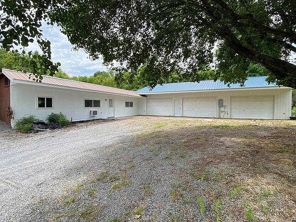 Perfect seclusion! Nice residence situated at the end of a dead-end road. Perfect for a get-a-way, private residence & live/work space. Oversized three bay garage workshop with 400 amp electrical service & floor drains. Ideal for a large shop or business. Beautiful pine wood walls and ceilings in much of the house. Rear area has covered porch, covered gazebo overlooking a small pond and a nice fenced area. Living area is heated & cooled with a through the wall hotel style unit.