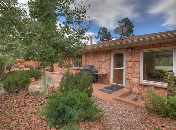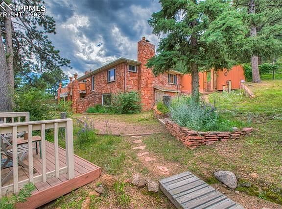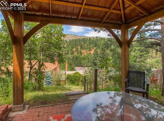 Welcome to this stunning 4 bedroom, 3 bath raised ranch home located in the picturesque town of Cascade, Colorado. Nestled on a 1.82-acre property, this beautiful residence showcases an exquisite construction of Manitou limestone, giving it a unique and charming character. The upper-level living room features beautiful custom built-in bookshelves, a Heatilator fireplaces adorned with Lyons flagstone, creating a warm and welcoming atmosphere. The gourmet kitchen is equipped with top-of-the-line maple cabinets and black granite countertops. Additionally, a spacious and concealed pantry behind bookcase allows for easy organization and access to kitchen essentials. The master suite offers it's own cozy charm with a fireplace and sitting area. The lower level has three more bedrooms, a cozy family room with an additional Heatilator fireplace to enjoy, a 3-person sauna, and a miniature "Golden Bee" bar replica reminiscent of the famous Broadmoor's Golden Bee. Outdoor enthusiasts will relish the property's backyard oasis, which backs up to the national forest, ensuring a private and serene setting. Entertaining and leisure opportunities abound with a spacious concrete patio. Just a short stroll uphill leads to a lighted pavilion, where one can unwind under the pergola. The front of the home boasts a covered patio, perfect for hosting gatherings, and a deck overlooking the picturesque surroundings. This home boasts remarkable energy efficiency exterior walls, double-paned windows, and extra-thick drywall, ensuring comfort and savings on utility bills and soundproof. Moreover, the property features a specially constructed carport. This Cascade home presents an exceptional opportunity as a private home or investment opportunity to enjoy the Colorado lifestyle to its fullest, providing a harmonious blend of luxurious living, natural beauty, and energy efficiency in an idyllic mountain setting. Hwy 24 convenience going East or West.