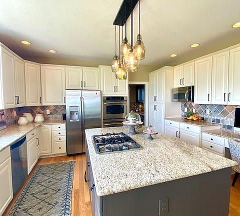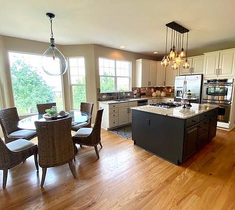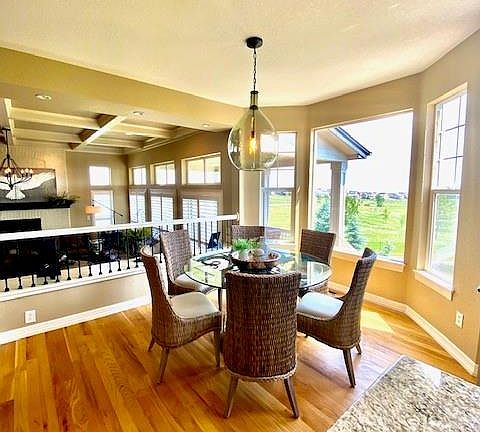 Best lot in the neighborhood! Gorgeous home on a premium .44 acre golf course lot. The grand entry leads you into an office, living room with fireplace and dining room. Beautiful kitchen with stainless appliances, large island and amazing views from the kitchen window. Kitchen open to family room with fireplace, coffered ceiling, more of the amazing views and access to a covered deck. Large master suite with private setting area and custom master closet. Finished basement has theater room, bar with temperature controlled wine closet, bedroom, bonus room and walk-out access to the HUGE mature landscaped yard with stone patio, fire pit and golf course views. New exterior and interior paint. Wood floors on the main level with recent addition of wood to stairs. New carpet upstairs.