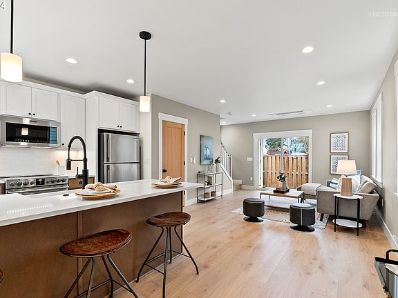 Welcome home! New Pocket Community on quiet street in Brentwood-Darlington! Combined Seller & Lender credit of $10,000 with our trusted lender Troy Pohrman of Residential Mortgage to be used for rate buydown and/or closing costs. Incredible New Construction right next to Woodmere School w/great access to Woodstock, FoPo, I-205, MAX, & Clackamas Town Center Shopping. Thoughtfully designed & constructed w/attention to detail. Farmhouse style home w/open floor plan featuring 9' ceilings, HW floors, tile & quartz countertops. Kitchen features eating bar, professional SS appliances, & pantry. Includes Refrigerator & W/D. Light & bright bedrooms feature vaulted ceilings, built-in safe, & stylish shiplap wall. Fully fenced yard space. Covered back patio w/ceiling fan, swinging chair, & storage. Bike Score of 86! Energy efficient mini-split heating & A/C! Low maintenance New Construction, just move in & enjoy! HES=10!