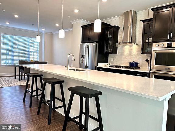 UPGRADED FOR LUXURY APPEAL. 4 Levels with Roof top Terrace and a mid level Deck. The Foyer entry features Luxury Vinyl Plank flooring, an ample sized ground level Bedroom and a Full Bath. A spacious 2 Car finished garage offers an interior entry, epoxy flooring, scuff-resistant walls w/shelving, and an electrical panel designed for EV charger installation. Additionally, an exterior Parking Pad provides 2 spaces. Heading up one flight, welcome guests to your Spectacular gourmet Kitchen that features a massive 13’ center Island w/Quartz countertop, and Professional Stainless Steel appliances. The large Pantry, double Wall Ovens, Gas Stove top, and upgraded Exhaust Hood make meal prep a breeze. Entertain in style with a Stunning Linear Crystal tiled Backsplash, Luxury Vinyl Flooring, an abundance of dimmable Recessed LED lights, 6 inch Baseboards and Crown moulding. The large living area and the dining area provide great space for comfortable living. Walk out thru the sliding glass door to the midlevel Deck. Great for enjoying meals or just lounging in the evenings. The 4 Panel channelled door shades offer style and privacy. A bonus Outlet in the closet keeps vacuums charged. The next level of 3 bedrooms includes full size Washer, Dryer, and a Hall Bath. Relax in luxury - the Primary Bedroom features a Tray Ceiling, Recessed lights, Ceiling Fan, and a Walk In Closet with Built ins. The ensuite luxury Bath includes Quartz counter top, a seated shower, Frameless Glass shower door, 2 Sinks, and an enclosed Water Closet for privacy. Heading to the 4th level you'll find a grand room with Cathedral Ceiling, a few built in shelves, a large closet (create a 5th bedroom?) and a Private Upper Terrace/Deck that provides an expansive view of the area. This is a favorite area of the sellers. The HOA includes an outdoor pool, a clubhouse, gym, walking path, and dog park. Don't wait! LEED Certified. Lightly lived in - Top of the Line homes don't last! (Please remove shoes or use covers)