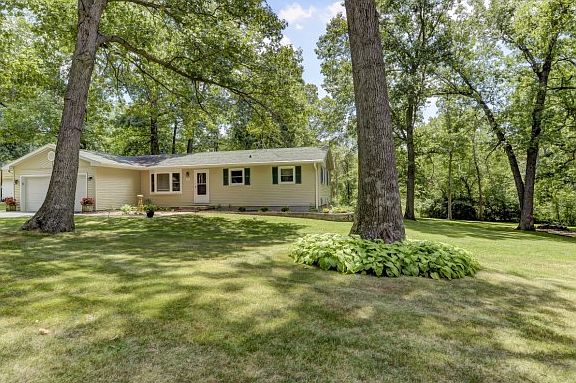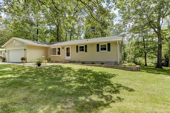 On a lovely wooded 1/2 acre lot, this home is truly at 10! Completely remodeled kitchen and family room area with new hardwood flooring, Hickory cabinets, Corian counters, crushed granite sink, breakfast bar, and more! Full bathroom has also been completely remodeled. Newer triple pane windows, ac, and furnace. The landscaping around this home is pristine. Extra wide driveway for RV or boat parking on the side of the home. 12 x 16 vinyl sided shed for extra storage!