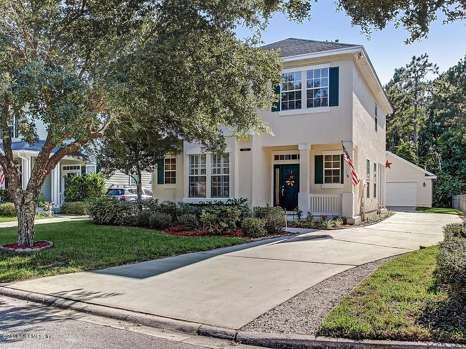 Charming home on wooded/preserve lot in the Coastal Series section of gated Hampton Park. Soaring 10' ceilings and an abundance of natural light welcome you into this fabulous open floor plan. Hardwood floors throughout most of the living area, tile in wet areas. The updated kitchen with Granite counters, 42'' maple cabinets, stainless appliances, breakfast nook and breakfast bar opens to spacious family room for excellent entertaining. Master suite with walk-in closet, en-suite with double vanity, water closet, deep garden tub and separate shower. Walking distance to amenities which include club house, pools, tennis court, play ground, soccer field, grills, basketball court, security and gate with guard, all centrally located & just minutes to beaches, Town Center, Mayo Clinic & I-295