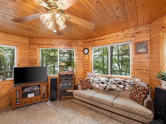 Youll love the privacy, peacefulness & the treehouse views of Alva Lake from the kitchen, dining & living areas of this 2BR/2BA home on over 1.5 acres of wooded wonderland. Enjoy main level living with a VERY spacious bedroom & walk-in closet on the main floor, a smaller room off the dining area (perfect for an office, currently a bedroom) & a laundry area in the mudroom. The family chef(s) will love the Hickory kitchen cabinets. The wood walls & ceilings of the 4-season living area enhance the treehouse feeling. When the weather turns, retreat to the finished lower level & enjoy the coziness the woodburning stove provides. There is another bedroom/bath in the lower level as well as lots of storage space. The 2-car detached garage also has a second floor with lots of potential; keep it as storage OR...bring your ideas! If you love to fish, youll find lots of Panfish, Largemouth Bass, Walleye & Musky here. Call today! Make this your new home base or Northwoods retreat!