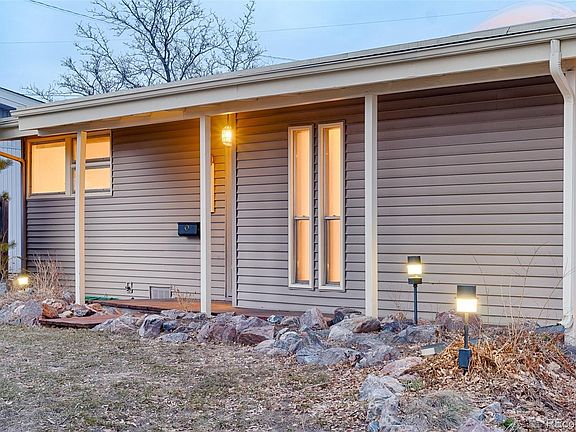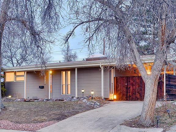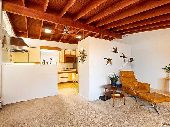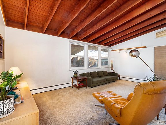 Enjoy the benefits of good design by making this mid-century modern ranch in Westminster’s Sunset Lanes neighborhood your next home. This is the first time this home has been on the market since it was built and it has been owned and cared for through the years by an interior designer who worked with locally famous designer, Hal Lipstein. It is one of 99 similar models in Sunset Lanes, designed by MIT and Harvard trained architect, Norton Polivnick of the firm Baume & Polivnick. They are known for having designed mid-century modern homes and other major projects in the Denver area. Polivnick split the floor plan of this home into two clear living areas, an open-plan living wing with beautiful vaulted stained wood ceilings with exposed rafters, and a more cozy and quiet sleeping wing with a separate hallway connecting three bedrooms and a delightful vintage bathroom with yellow and black tile. The spacious living room has large windows that look out onto the private backyard and covered patio, and a door that opens to the attached carport. The eat-in kitchen is at once open to the living room, and yet visually screened by a pony wall, and has clerestory windows that let in natural light from outside. A spacious addition in front of the home is currently staged as a dining room, but has the flexibility to be whatever you like – a formal or informal living room, artist studio, workspace, etc – the diffused light from a huge skylight above is amazing throughout the day. The laundry is centrally located in the sleeping wing, and the three bedrooms each feature full-height closet doors (a rare find in any home), and large vintage Andersen wood windows, set high off the floor for privacy. Pull the carpet out and refinish to enjoy the luxury of the original hardwood floors. Come experience this home for yourself . . . your dream home is waiting in Sunset Lanes! Visit the 360 Virtual Tour at 7958.in360.us.