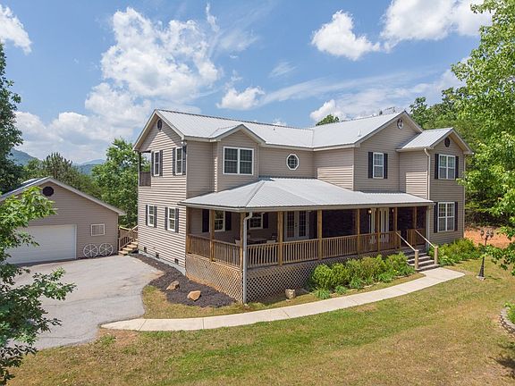 A true Cowee Valley gem! This beautifully appointed home sitting on 1.82+/- acre private hilltop over looking a private community lake. Yet easy access off of main road is a rare find. Enter the home from the large covered porch that over looks the lake to main level living that features beautiful hardwood floors and 9 foot ceilings throughout. The wonderful kitchen featuring granite counters tops and stainless steel appliances, opening to the dining room that connects to living room with beautiful rock fireplace. The back portion of main level has a separate family sitting room, a office area or bedroom, full bath, and laundry room. Upstairs you will find the master bedroom en-suite with a private covered balcony. A large walk in closet and inviting master bath that has garden tub and separate shower. The remainder of the upstairs host 3 more bedrooms and 2 full baths and a sitting/study area. Triple climate control will maintain the comfort. Outside, in addition to the lake in front home is a double detached garage which connects the back of the home to nice patio and large screened porch plus a fenced back yard for your pets enjoyment. A true gem that must be seen.