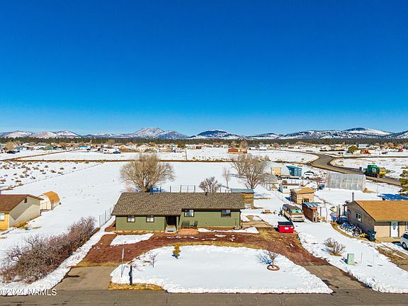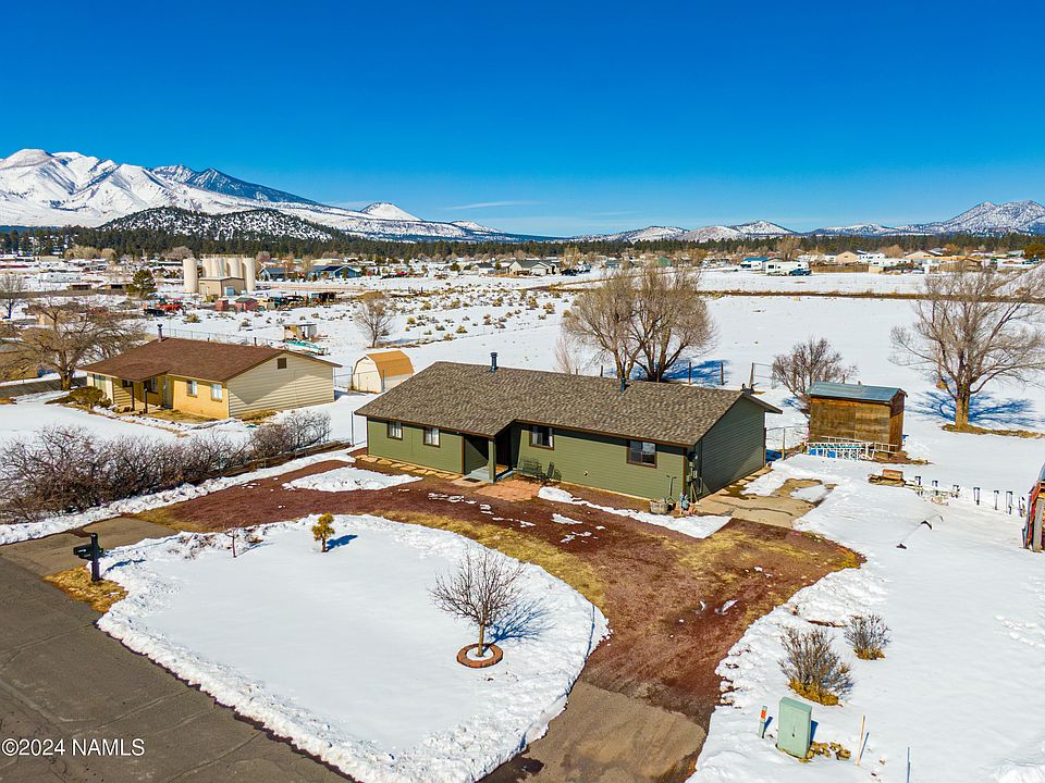 Located in the peaceful community of Doney Park, just 7 miles east of Flagstaff, this home offers a serene retreat on a spacious 1-acre lot. The property features a convenient through driveway, perfect for accommodating your outdoor gear and equipment. With room for toys, gardens, horses, and more, this property is a versatile canvas for your lifestyle. The backdrop of the stunning San Francisco Peaks in the backyard adds a breathtaking touch to any family or social gathering. Recent upgrades include a brand new asphalt shingle roof and fresh exterior paint, enhancing both the home's durability and visual appeal. Inside, the 1,371 square feet of living space includes three bedrooms, two baths, and a generous bonus room currently used as an additional bedroom. The open kitchen design flows seamlessly into the inviting living and dining areas, creating an ideal communal space for gatherings. In the winter, the cozy wood-burning stove keeps the home warm and inviting. Having been cherished and maintained for over 25 years, this home is now ready to become your own. Schedule a viewing today and seize the opportunity to make it yours and start creating lasting memories in this special place!