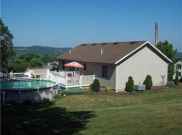Be the envy of the neighborhood! Enjoy upscale amenities in this 14 year young, all-electric ranch precisely perched in quiet neighborhood. Maintenance-free vinyl exterior is encircled in professional grade landscaping and accessed by a sharp paved driveway. Attractive Flagstone steps escort you to sidewalk pavers leading to decorative glass front door opening into an open & airy interior. Foremost, sundrenched living room transitions into a gorgeous eat-in kitchen underscored in resilient earth-toned duraceramic tile showcasing abundant oak cabinetry, contrasting black granite-like counters and backsplash, eat-at center island, sleek black & stainless appliances and intimate dining venue. Nearby master suite is accompanied by a walk-in closet and king-size ensuite bath flaunting easy-care neutral flooring, oversized oak vanity offering abundant storage and his and hers sinks and linen closet. Further on rest and relaxation await in 2 more comfortable bedrooms. A second full bath complimented by earth-toned flooring, oak vanity & coordinating linen cupboard completes the main level. Additional living space awaits downstairs featuring a quality-finished family room and a half bathroom underscored in ceramic that can be easily converted to a full bath with corner shower allowing for 3 full baths. Bathroom outflows to a spacious laundry room offering convenient wire shelving making household chores quick and easy. Other noteworthy amenities include a pristine finished garage equipped with convenient storage cupboards and closet, laundry sink, and workspace, refreshing above-ground pool complimented by trex and vinyl tiered decking offering an additional place for relaxing or entertaining, storage shed & a 100% Money Back Guarantee. Call Renee Dean @ 724-730-6909 for a complimentary tour of this alluring energy-efficient home overflowing with enviable amenities conveniently located minutes to Routes 18, 422 & I-376.