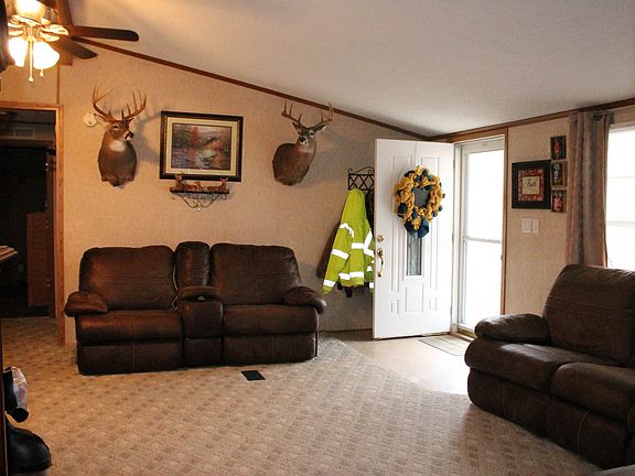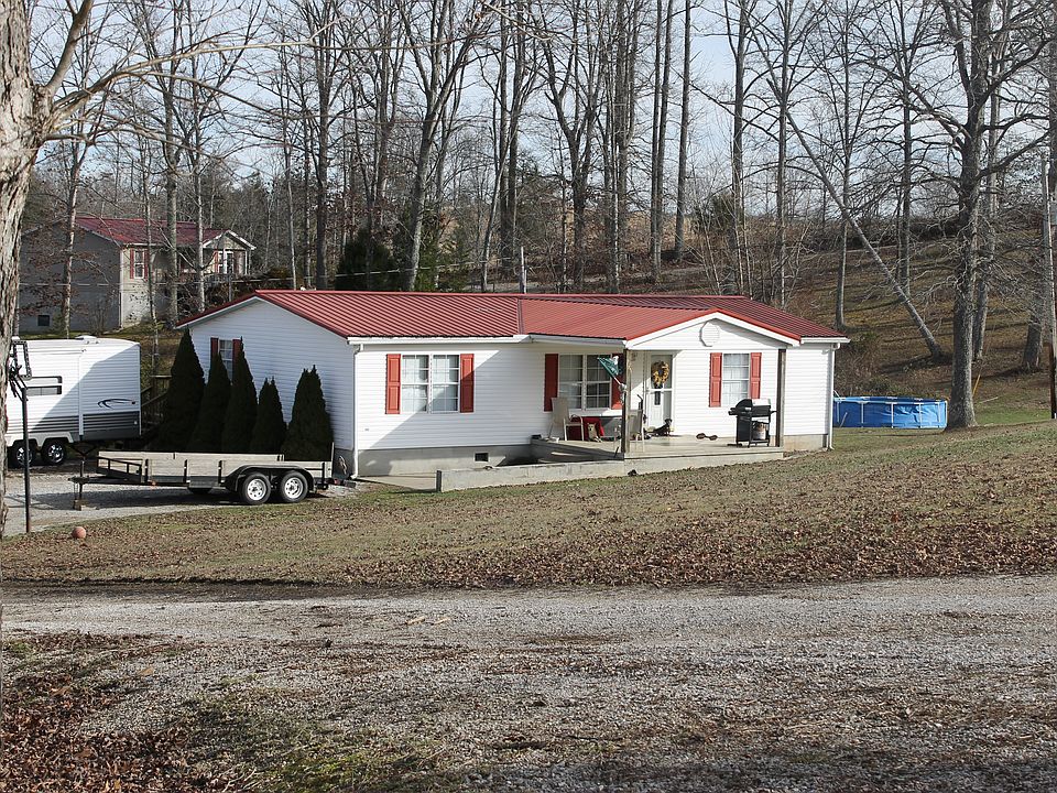 1995 28x50 Clayton Doublewide located appr. 2 miles off 519, 20 minutes from Morehead, 10 minutes from Cave Run Lake, 15 Minutes from West Liberty. 3 bedroom, 2 full bath, kitchen, dining room, utility room, living room that is open to kitchen and dining room. 12x16 covered concrete porch with a 12x16 patio. 8x32 wooden back deck. 20x24 garage with concrete floor and electric. 12 x 28 A-framed shed. 5x9 storm shelter. the deed calls for 3-5 acres more or less. Master bedroom and bath was remodeled in April 2016. This homes sits on a concrete slab with block underpinning. A new heat and air pump was installed in April 2016.