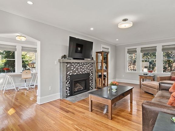 Extensively renovated and bright 4 bedroom Tudor in Wonderful Waban! The custom kitchen with Thermador stainless steel appliances opens to a large enclosed deck overlooking the professionally landscaped yard.The generous dining room off the kitchen and front-to-back living room are perfect for family living and entertaining. There is a lovely and bright sitting area off the living room perfect for an in-home office.The primary bedroom offers 2 closets and en-suite renovated bathroom.There are 3 additional bedrooms and a 3rd floor walk-up for storage. Enjoy a newly renovated family/media room, laundry room, bath and mudroom in the lower level.There are 2 laundry areas. Improvements include new kitchen, updated baths, 2020 Lochnivar boiler and tankless water heater, updated electrical/lighting throughout, gas fireplace, interior/exterior paint and expanded garage.Conveniently located near 95/Rte 9, the Waban T stop, shops and restaurants.The front of the house/driveway are on Stanley Rd.