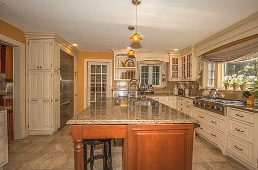 Classic, Elegant & Versatile describe this well maintained dormered cape home on over an acre lot. Absolutely gorgeous, high end custom kitchen with Viking appliances which include double oven, warmer, gas cook top, over sized fridge which overlooks a beautiful yard with extra large storage shed which could be converted to a one car garage with it's own second side entry drive-way with additional parking. Traditional formal living room has wood burning fireplace and leads to a slate covered side porch. Large hallway upstairs could be used as office area. Two large bedrooms on each side of stairs have a smaller tandem bedroom attached. Formal dining room off kitchen, original one car is being used as showroom space could be converted back or used as office/fam room. Rear sun room is heated and there is a fireplace in basement for future living space. Seller will remove displays prior to closing. Work and live in this unique multi zoned property being used as kitchen sales.