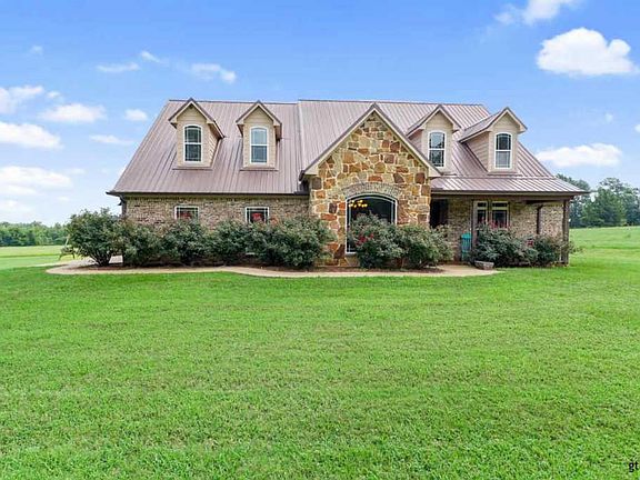 This stunning 1 1/2 story custom built home, with 3,421 square feet includes 5 bedrooms, 3 1/2 bath and sits on 33.31 acres. Upon entering the home you have a formal dining room off the entryway. The home has an open concept, with a living room, breakfast/dining combo and kitchen. In the breakfast area you are welcomed with a beautiful stone fireplace with a wood burning insert. The kitchen has custom cabinets with granite countertops and copper sink. There is a double oven and gas coooktop, stainless steel appliances, plenty of cabinet storage and walk in pantry. The split master bedroom features its own master bath with marble countertops, bathtub, vanity, separate shower with custom bench, and walk in closet. Also, two downstairs bedrooms come with their own full bath. Additional room is and office/craft room. Make your way up the wooden staircase to find a bonus room with a 1/2 bath and bedroom. Attic has spray foam insulation. Outside you will find a back patio, and a 1 acre springfed pond.