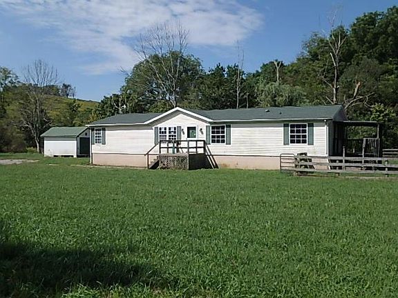 Watch The Seasons Unfold! Picturesque setting offering a great opportunity with a very accommodating manufactured home on 5 acres. Split bedroom design, formal living room, family room with fireplace, and plenty of storage options. Covered side and rear porches offer nice spots for relaxing or just enjoying the outdoors. Babbling brook with wooded area in back. Short drive to Georgetown or Cynthiana and less than 8 miles to Toyota plant. Don't miss this chance! It's Your Move! Offered for sale AS IS without warranties of any kind. Buyer to satisfy themselves regarding all aspects of the property, including schools and potential flood risks. Loan pre-approval, proof funds required.