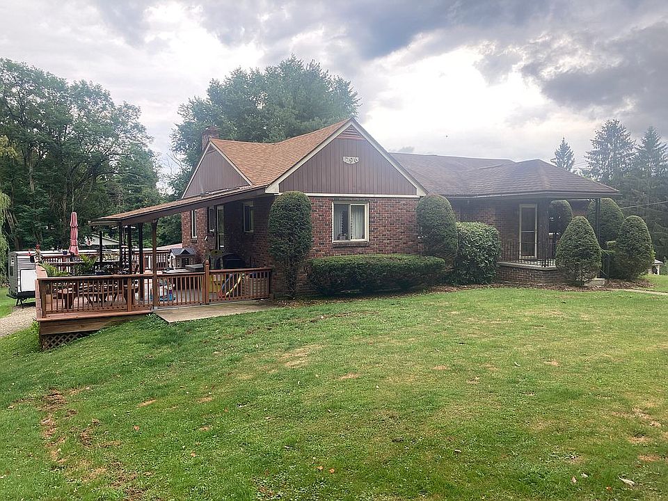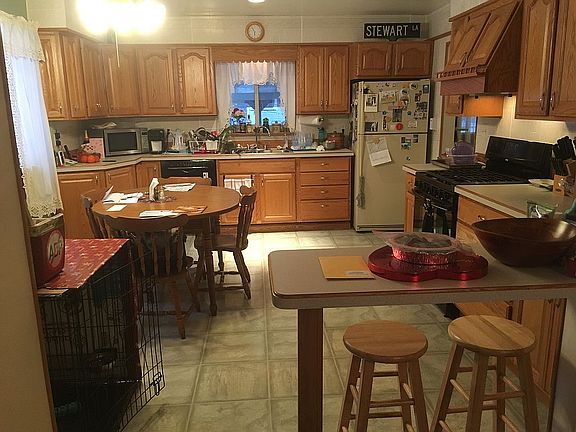 Beautiful neighborhood on the edge of town, with plenty of yard, wrap-around driveway, two garages, and free natural gas for heating. This brick ranch-style home offers single floor living with the 1st floor laundry, and ample storage and room for activities in the partially finished basement and workshop. Relax on the newly rebuilt deck, grow your own produce in the raised-bed garden, and pick blueberries and raspberries by the backyard fire pit (with electric). The main living area is an open concept from the kitchen, through the dining room, into the living room. All 3 bedrooms have closets and look out onto the backyard.